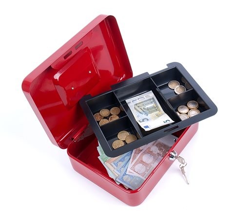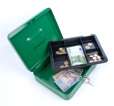 Popis produktu: Pokladnička malá 152x115-80 mm, farba čierna, červená, zelená.